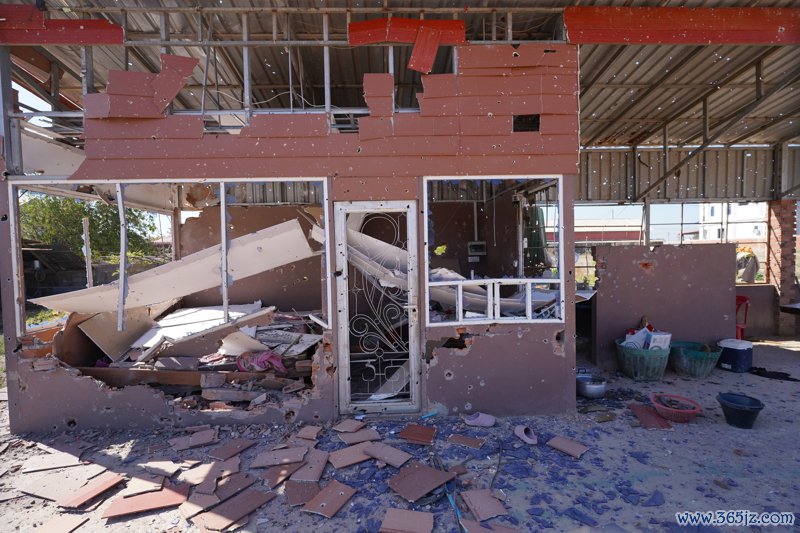 12月19日,柬埔寨奥多棉吉省,在阻碍中受损的房屋。\n