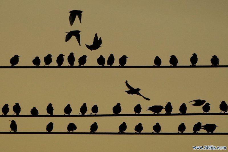 12月20日,好意思国堪萨斯州埃杰顿,停歇在电线上的鸟。\n