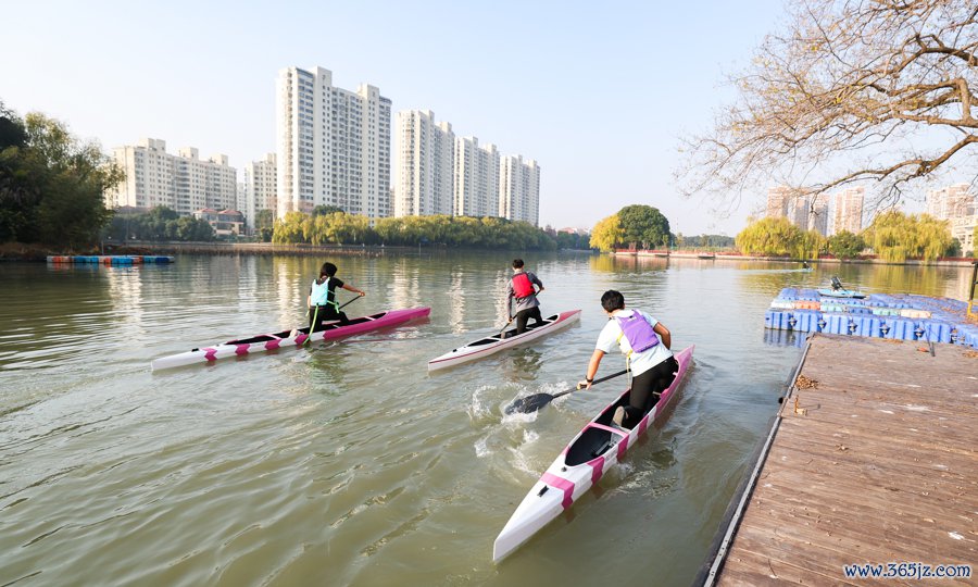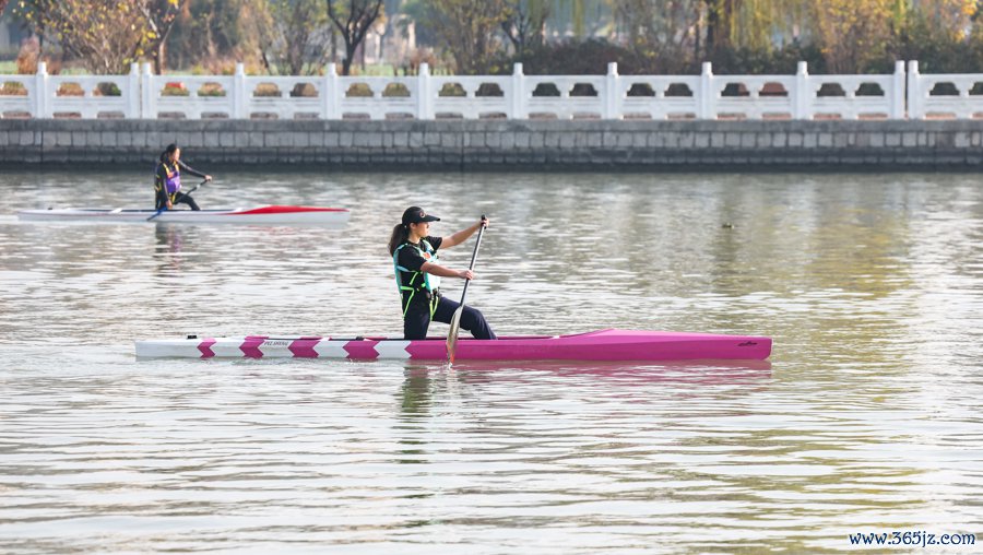 12月21日,松江区通波塘(广富林街谈段)水上考研基地内,松江皮划艇队的清醒员劈波斩浪,备战上海市第十八届清醒会。